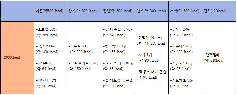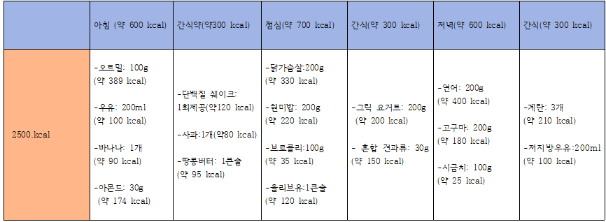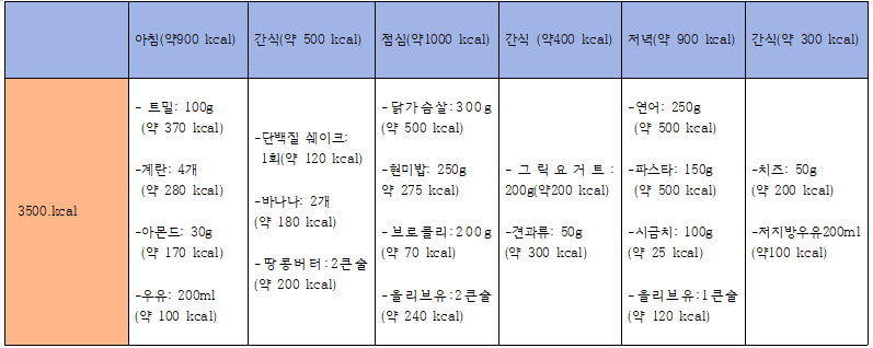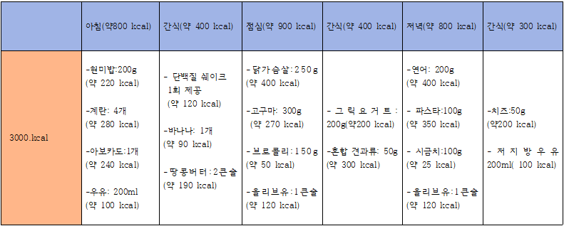 3.하루 칼로리 식단표