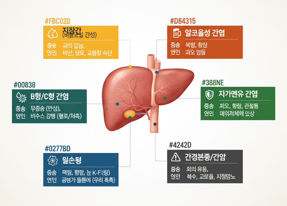| 자가면역 간염 | 면역 체계가 간세포를 공격해 만성 염증 유발 |
